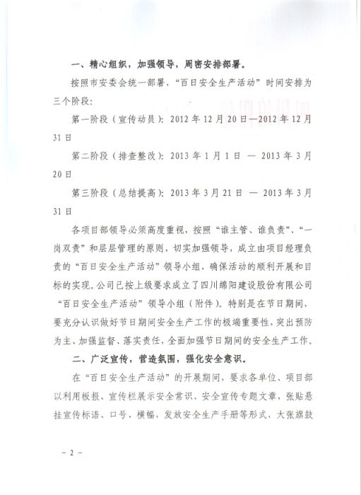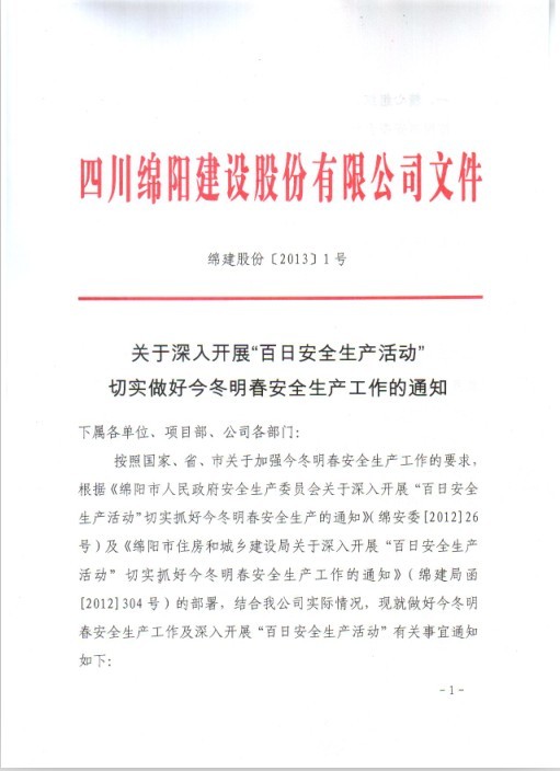 綿建股份[2013]1号關于深入開(kā微兵i)展“百日安全生産活動”切實做好(hǎo)今冬明春安全生産工畫紙作的通知